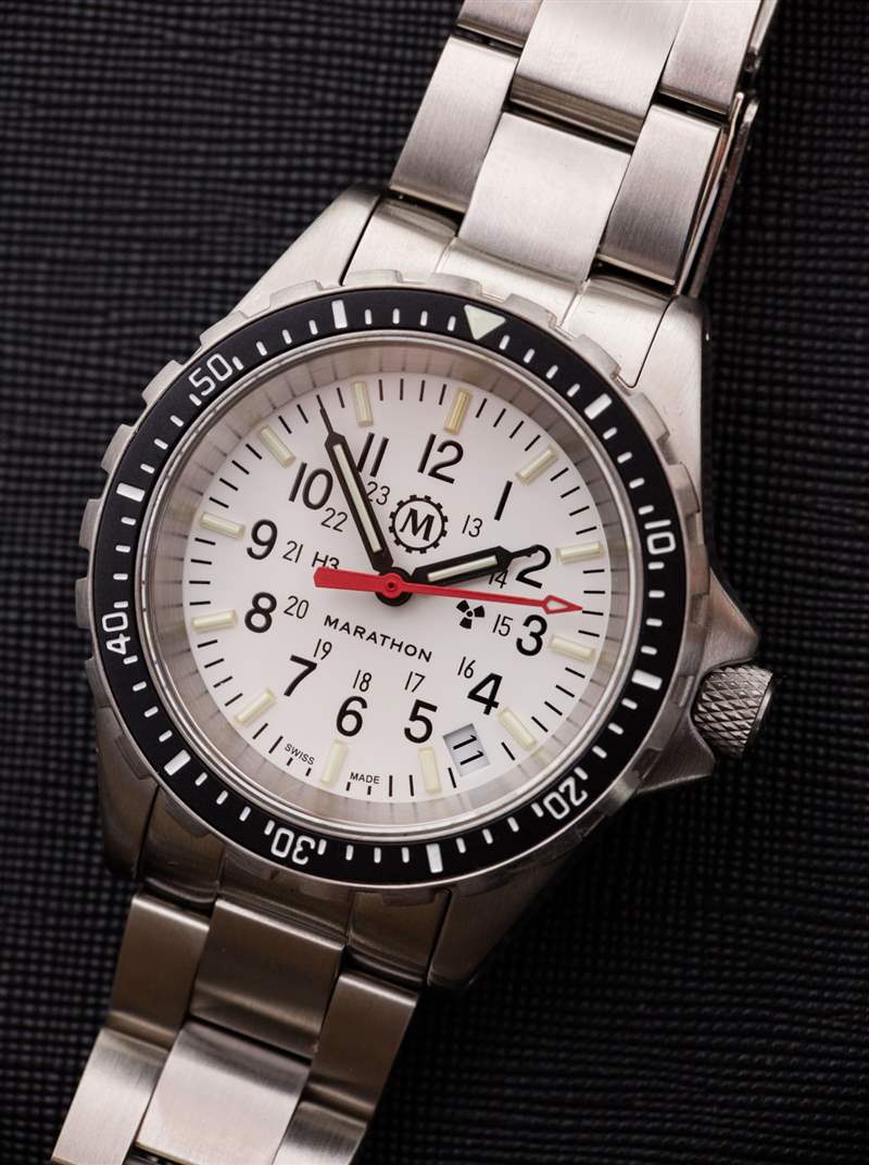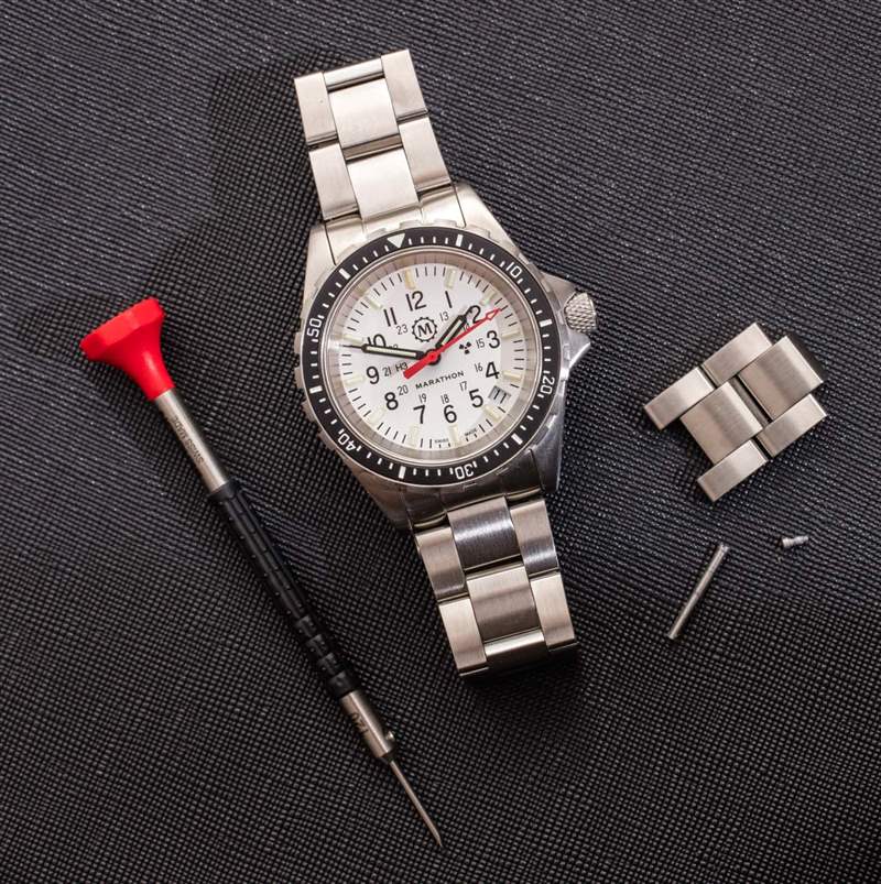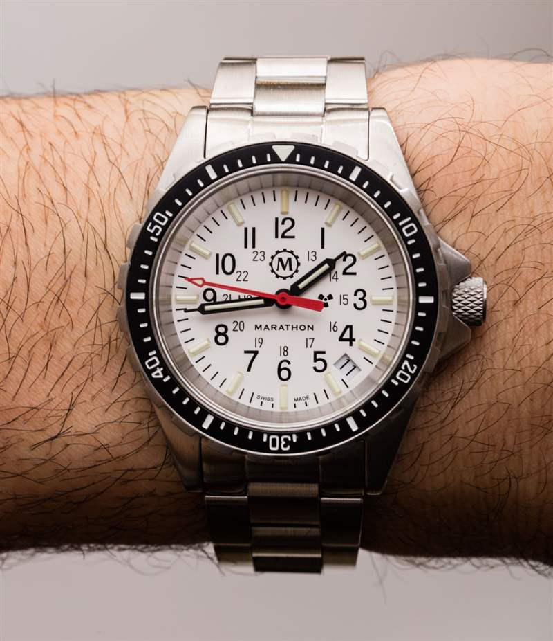 這是軍事供應商和手表制造商馬拉松生產的第一款同類白表盤手表。我最近參觀了馬拉松在加拿大多倫多的總部,發現該公司的負責人正自豪地佩戴著這款手表的原型。“你知道,這是我們制作的第一個這樣的白色表盤,”第三代 Marathon 老板 Mitchel Wein 說。Medium Diver’s Quartz(也常被稱為 TSAR,或“氚搜救表”)是 Marathon 生產的一款有趣且非常實用的“工具表”,它繼續為美國、英國、加拿大和其他軍隊提供時計軍隊。最近,Marathon 做出了一項重要決定,為其鐘表系列增添趣味,同時確保 Marathon 手表一如既往地耐用和實用。