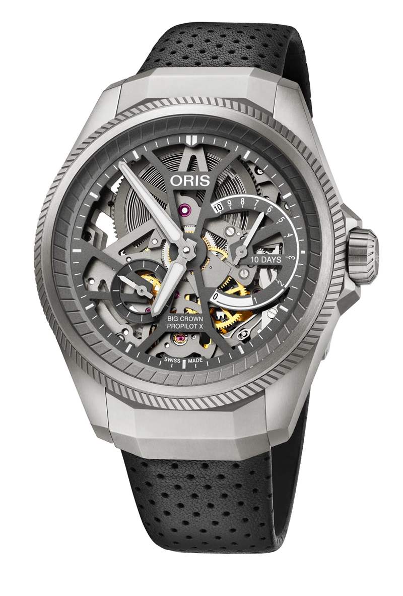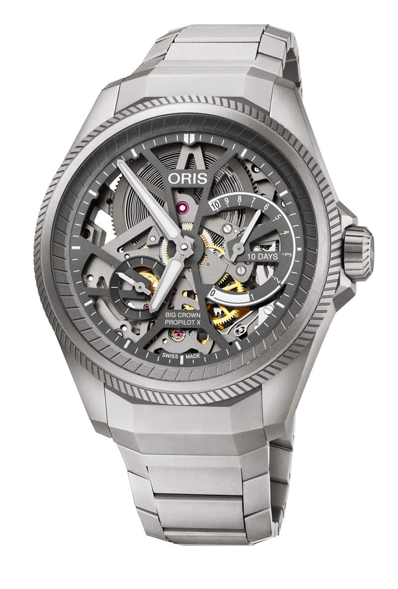 PPX 是一款吸引人、清晰易讀、技術有趣且舒適的手表。全鈦表殼和可用表鏈(也有表帶版本)采用 5 級鈦金屬設計;表殼寬 44 毫米,防水深度達 100 米。渦輪式表圈是從 Oris ProPilot 系列中借來的,您可以在 PPX 上看到對其他 Oris 美學的致敬。然而,它確實有一個全新的表殼和表鏈(連同機芯),所以它是完全不同的。