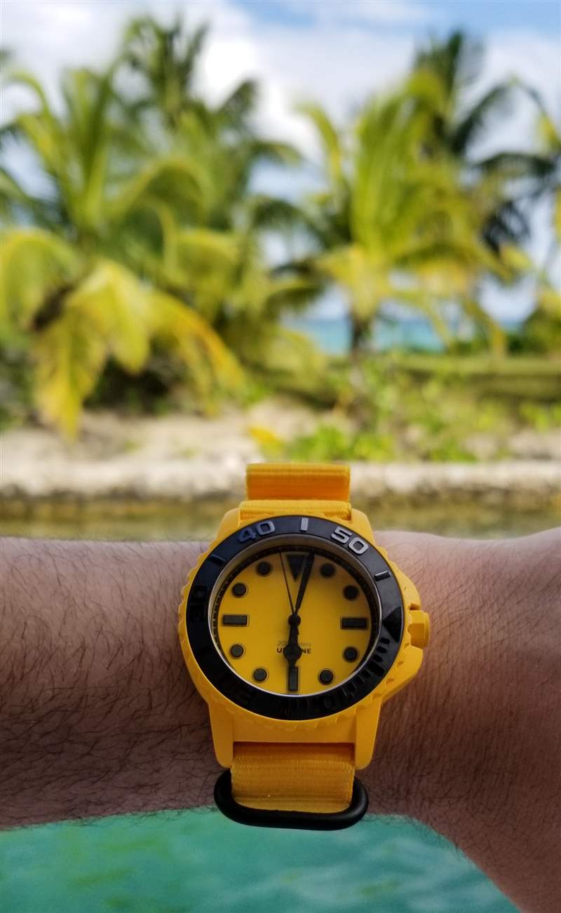 對我來說幸運的是,我其實很喜歡游泳。這種品質并不能定義每個對潛水表充滿熱情的人。每次有機會,我都喜歡用專為此目的設計的時計在水中做些事情。最近,我有機會帶著我設計的手表——Undone?Aqua BLK + YLW——去了世界上最好的游泳地點之一:巴哈馬(更具體地說,是我第一次旅行的拿騷島)時間)。在這個受歡迎的旅游目的地,我每天至少要花兩個小時(通常更多)在水中。在那里,潛水表不僅僅是一件奢侈品,它還是一個工具。