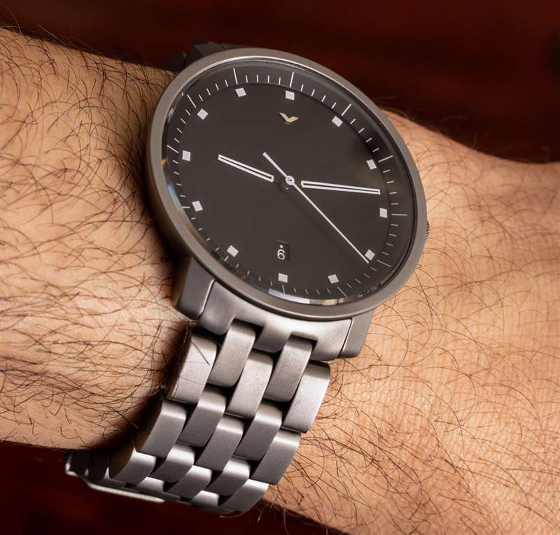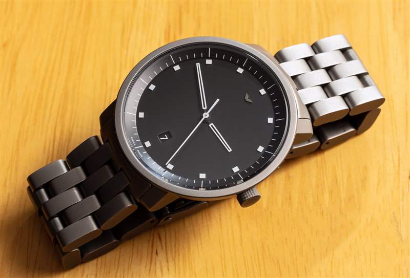 還必須考慮價格,但總的來說,我認為可以肯定地說 Ventura V-Matic EGO 遠勝于典型的 Kickstarter 時計。也就是說,我懷疑 Ventura 是否會依賴 Kickstarter 來購買太多(如果有的話)未來的手表,因為據我了解,該品牌或多或少已經建立起來。質量方面,您在匹配的手鏈上有一個深色啞光鈦金屬表殼。Ventura 為 V-Matic EGO 提供黑色和銀色表盤,以及配套的表鏈或黑色皮革表帶。銀色表盤很有趣,因為它的表面處理和藍色指針和時標。它可能是節(jié)目中的明星,但我想看看黑白表盤 V-Matic EGO,因為它讓我想起了我昨天美好回憶的 Ventura。