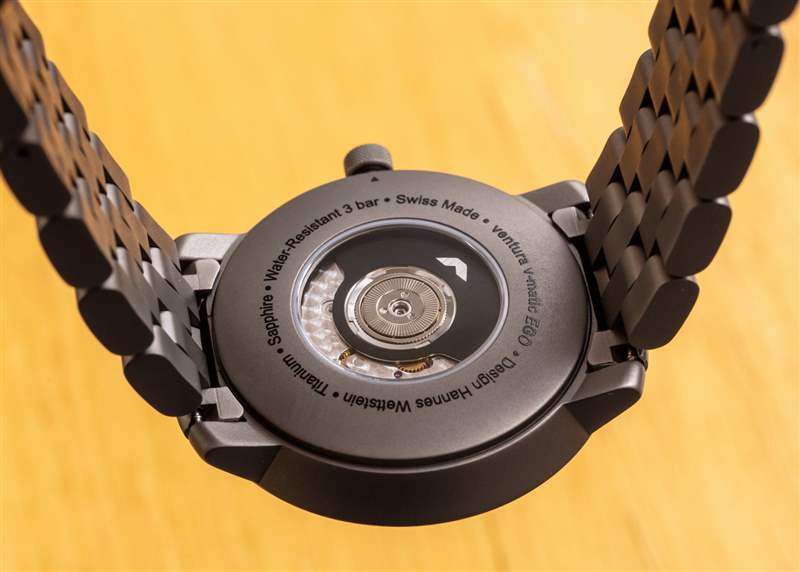 說到日期輪,Ventura V-Matic EGO 內部的機芯是瑞士制造的 ETA 2892-A2 自動機芯,這是一款相當不錯的自動機芯,擊敗了更常見的 ETA 2824,尤其是在它的薄度方面。您可以通過底蓋窗口查看機芯。我真的很喜歡佩戴 Ventura V-Matic EGO,因為它具有永恒的風格和定位為“設計愛好者的產品”。它既舒適又易于閱讀,對于今天的許多新手手表愛好者(他們往往經常參加 Kickstarter 鐘表活動)來說,享受 Ventura V-Matic EGO 可能比最初對它感到興奮更容易。如果有足夠多經驗豐富的手表愛好者了解并支持文圖拉的復興,那么未來幾年它可能會非常光明。今天的 Ventura 現(xiàn)在已經證明它可以重現(xiàn) Ventura 過去的美學魔力;問題仍然是他們是否對其未來有遠見。