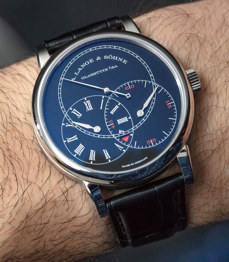 18k 白金表殼本身寬 39.9 毫米,厚 10.6 毫米。表盤上的紅色小提示是運動的,并提醒佩戴者,這款手表的核心是提醒用戶使用古董科學觀察設備。今天,對于想要有足夠機會講述有關腕表故事的人來說,這或多或少是一款燕尾服或正裝腕表。朗格在這個模型上錯過了一些其他手表的完美易讀性。帶有薄拋光指針的黑色表盤通常難以在直射光下讀取。A. Lange & Sohne 處理這種材料和飾面的組合與預期的一樣好,但我希望指針是白色的,以提高易讀性并與時標和索引的顏色相匹配。