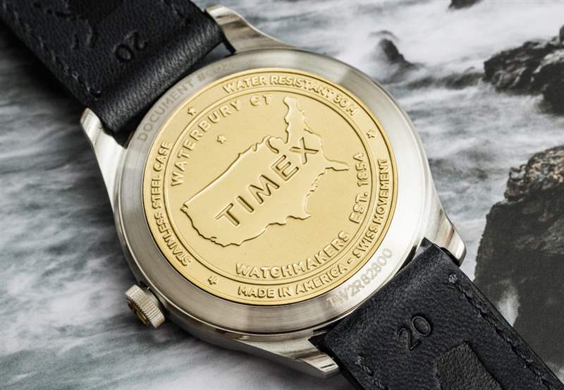 Timex 于 1854 年在康涅狄格州沃特伯里成立,這就是表盤上“W.1854”標簽的含義。當時(實際上仍然是今天)新英格蘭的這個地區是機械加工和制造的中心。腕表的背面以及表冠嵌件是這段歷史的見證。American Documents 手表的表底蓋和相配的黃銅表冠嵌件由黃銅制成,被稱為“美國文件硬幣”,是對 Timex 和沃特伯里地區歷史的直接認可。是的,當然,黃銅底蓋和表冠嵌件是在美國生產的。