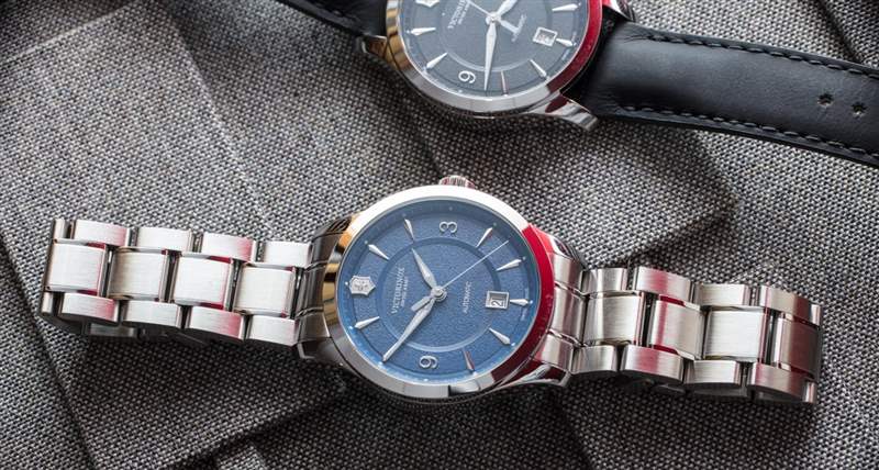 我發(fā)現(xiàn)這款手表特別吸引人的是清晰易讀(以及對稱設(shè)計)的表盤,它可以正確使用比例以及表面光潔度。Victorinox Swiss Army 巧妙地將拋光指針和時標(biāo)與啞光“粉末”紋理表盤相結(jié)合,使拋光表面具有光澤度,同時保持強(qiáng)烈的視覺對比,便于閱讀。對于藍(lán)色表盤上的表殼來說,情況可能不太好,但白色表盤(兩者)很容易成為這個系列的贏家。Victorinox Swiss Army 需要決定生產(chǎn)什么顏色以及與表盤選擇搭配什么表帶顏色,因為他們不能發(fā)布無限的 SKU。然而,我確實,