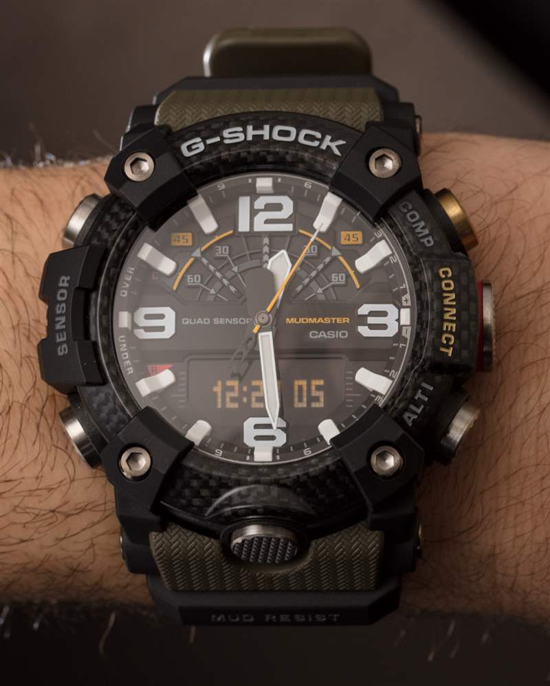 也許 G-Shock Mudmaster GG-B100 中的一些最佳技術并不在于機芯,而在于表殼。防水深度達 200 米,新款 Mudmaster 比上一代型號輕得多。多虧了卡西歐稱之為“Carbon Core Guard”的全新表殼架構。卡西歐現在使用更多的碳纖維材料,以及新的樹脂纖維類底蓋結構。新的 Mudmaster 比以往任何時候都更耐沖擊和抗碎屑,而且重量更輕。這些手表看起來也更現代,老式的金屬底蓋與手表其他部分的現代外觀和材料相結合,感覺就像是過去的遺跡。廣告訊息廣告信息結束