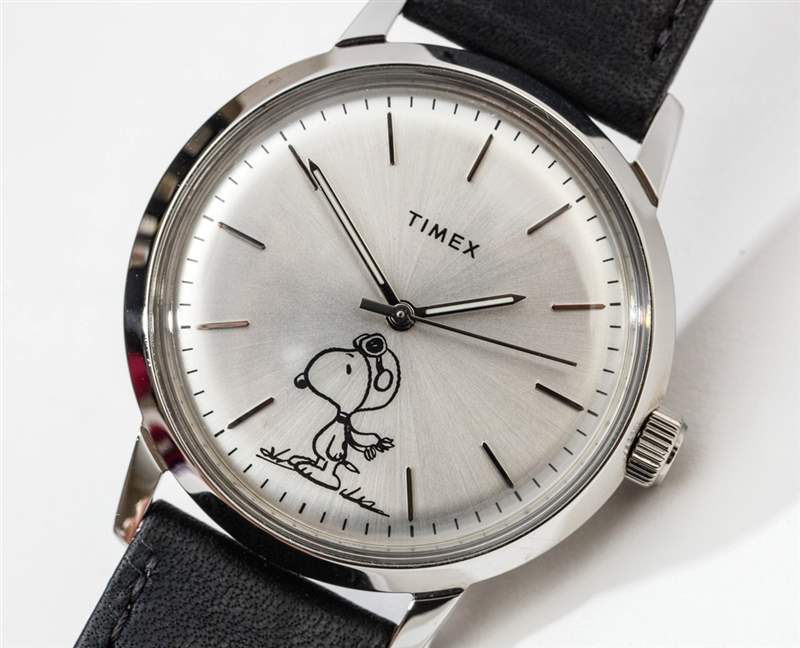 Marlin Automatic 史努比版是全新 40 毫米寬的Timex?Marlin Automatic 時計系列的限量生產版本,參考 TW2R94800。顧名思義,史努比版的表盤上有來自花生漫畫世界的飛行員版史努比。這被稱為“飛行王牌史努比”,據天美時稱,該品牌于 1965 年首次生產了表盤上帶有該字符的手表。