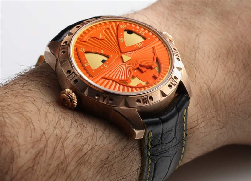 愿小丑的力量強迫你!2018 年莫斯科,俄羅斯獨立制表商(以及 AHCI 現任主席)康斯坦丁·查金(?Konstantin Chaykin?)制作了一款獨一無二的他廣受歡迎的小丑手表,以南瓜燈籠為主題,名為康斯坦丁·查金小丑萬圣節.?盡管我們心愛的“傻臉豪華手表”的這些“怪異”青銅外殼版本中只有一個存在,但我仍然認為這款高端鐘表的娛樂性值得分享。Konstantin Chaykin 本人可能被要求以一系列方式渲染 Joker 表盤,這只是一種可愛的方式。這當然引出了他下一步將從小丑身上得到什么的問題。