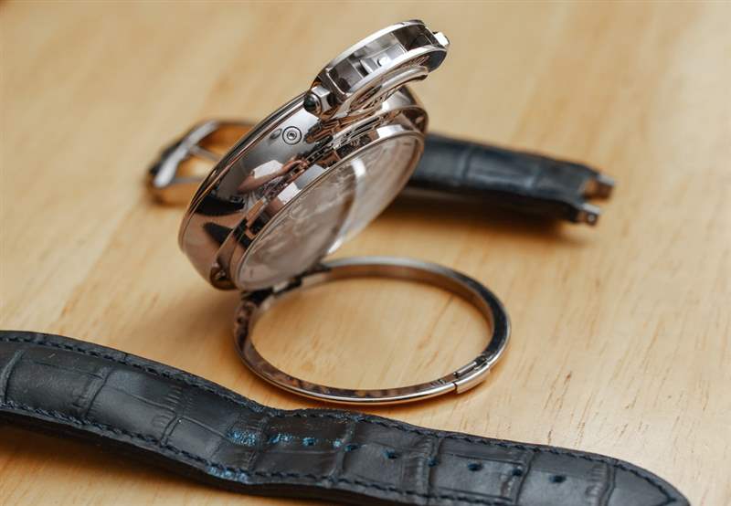 表冠所在的表殼頂部的“緞帶”顯然是為了喚起懷表的外觀。多年來,我一直在反復(fù)思考這種設(shè)計是否對我個人有吸引力。真正賣給我的是看到別人的手表。有趣的是,您對戴在手腕上的手表或站在您旁邊的人的感知會有多么不同。播威制作精致的東西的能力確實值得他們?yōu)橹炔省?/p>