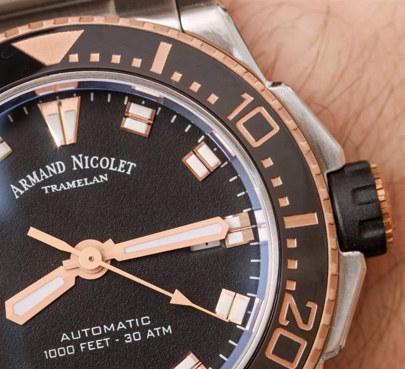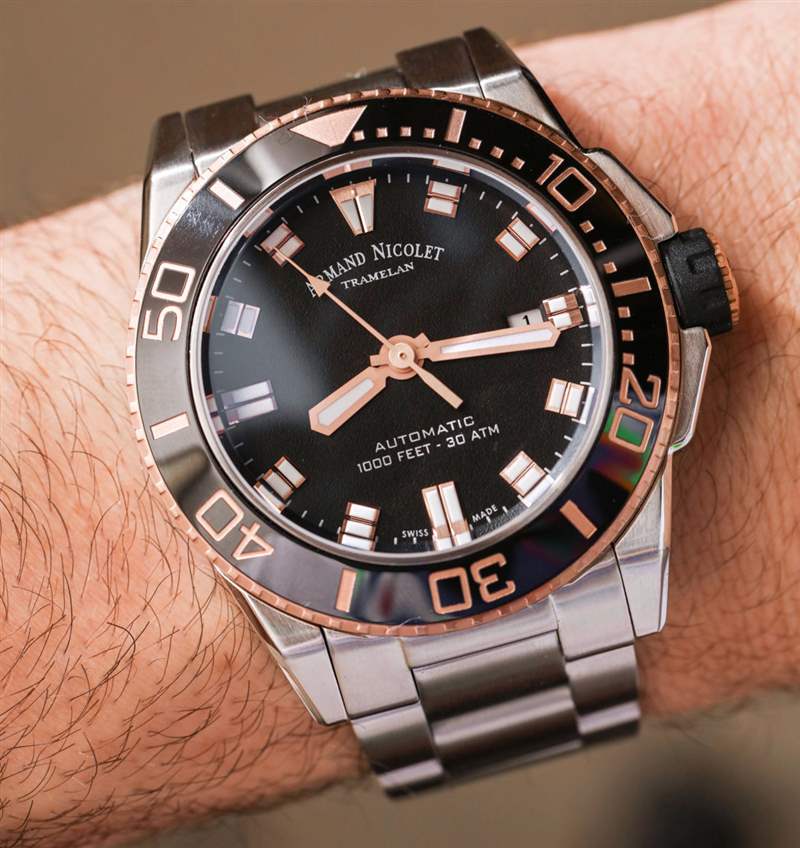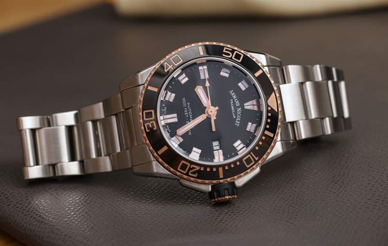 2018 年,瑞士手表品牌Armand Nicolet發(fā)布了 JS9 系列的全新潛水表系列。幾乎每個(gè)手表品牌都在嘗試在價(jià)值和風(fēng)格主張方面做出更好的潛水表。為什么?具有個(gè)性的運(yùn)動(dòng)型/功能型/表現(xiàn)力工具表是目前奢侈鐘表消費(fèi)者最需要的。那么讓我們看看 JS9 的表現(xiàn)如何。今天要評(píng)測(cè)的是 Armand Nicolet JS9 參考 A480ASN-NS-MA4480AA(一口),它是 JS9,帶有匹配的鋼表鏈,黑色和玫瑰金色調(diào)。這是 2018 年的新系列,在十幾個(gè)可用的變體中,我碰巧最喜歡這個(gè)模型的外觀和易讀性。