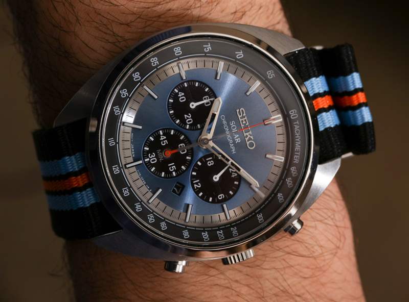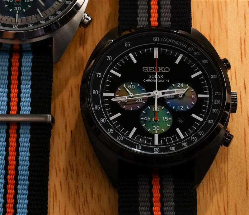 作為手表愛好者,我非常感謝精工在這些 Recraft Solar Chronograph 手表的表盤設計上付出了多少努力。深度是通過具有各種層以及應用的小時標記來創建的。表盤周圍是一個凸起的rehaut,帶有最小的測速刻度,指針都具有出色的對比度,計時碼表子表盤略微凹陷。精工也沒有在表盤上添加任何僅僅是裝飾性的東西。這些都是非常復古的工具手表,其吸引力和缺乏裝飾元素是其中的一部分。請注意,這與許多其他 Seiko Recraft 型號形成鮮明對比,后者非常專注于重現過去更具藝術性的表盤。實用手表愛好者會欣賞這種精工對 Speedmaster 美學的詮釋。