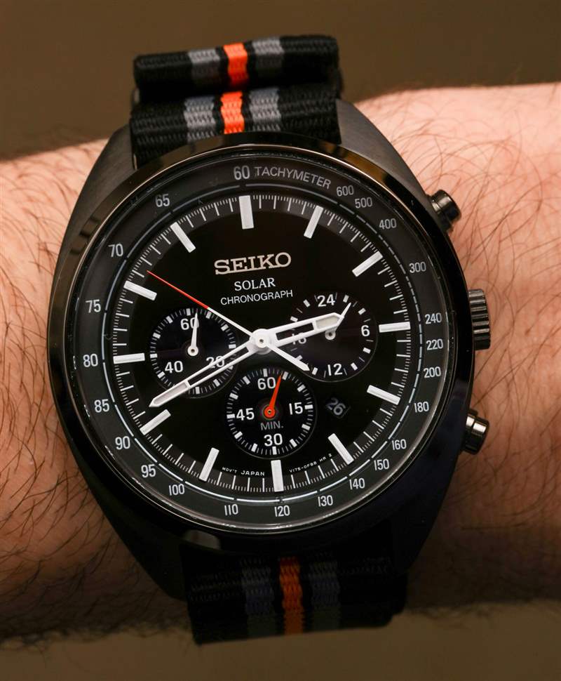 Seiko SSC667 和 SSC669 手表內部裝有 Seiko 內部 V175 機芯。它配備了一個 60 分鐘計時碼表、一個掃秒秒針、一個小秒盤、一個 24 小時指示器和日期。精工巧妙地設計了手表的表面,使子表盤實際上是光線通過表盤進入下方的光伏電池,從而為電池充電。這些大多不透明的窗口在光線下閃爍著一點點,有時讓我想起表盤上黑色珍珠母貝的外觀。這是一個有吸引力的外觀。精工還通過將日期放在黑色光盤上(我認為這是個好主意)來很好地淡化日期。指針和時標涂有 Seiko 的 LumiBrite 發光體。