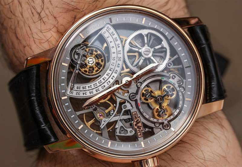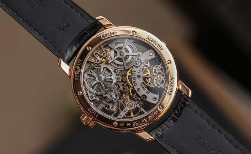 盡管始終具有明顯的技術優勢,但許多 DeWitt 手表經常存在一個或多個小的易讀性問題。在 Academia Skeleton 的情況下,指針很容易融入表盤,而且有點偏短。雙手遭受完全拋光以及自身有點骨架化的困擾。這不可避免地導致與設計師的分歧,即他們“想要這樣”。這是否意味著他們不希望手被強調?我認為確實如此。我完全不同意豪華手表不需要專注于清晰地顯示時間的設計理念,因為人們購買這些產品是為了藝術目的。我提到這個反駁我的論點,因為這是我在與許多品牌私下討論與易讀性相關的問題時得到的典型回應。他們一次又一次不同意我的觀點,而明確的證據表明清晰的手表是市場上銷售最廣泛的手表。再說一次,由于 DeWitt 的產量很低,我認為他們在銷售 28 塊 Academia Skeleton 手表時應該不會有太多麻煩。