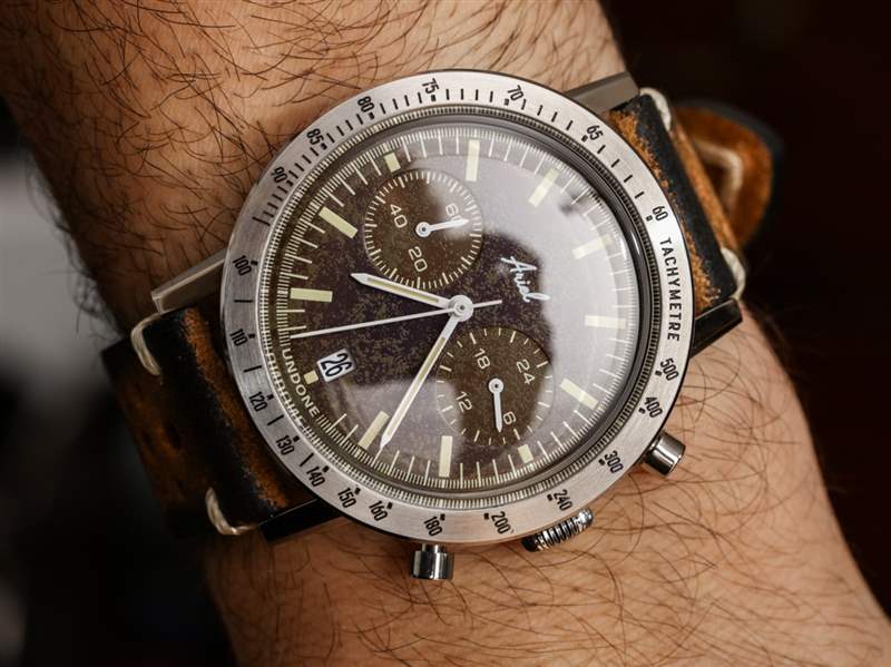 與全新的東西相比,老化的外觀可以為物品提供更直接的個性。我指的是那種“生活”的外觀,你可以在這樣的手表中充分展示它——尤其是當你將表殼與其中一條復古風格的皮革表帶搭配在一起時,這些皮帶有自己的變色方式,從邊緣由淺到深。舷窗設計與許多 20 世紀中期運動和賽車手表的外觀相呼應。讓我們回到表盤,因為開發(fā)它們所涉及的努力值得一提。廣告訊息廣告信息結(jié)束