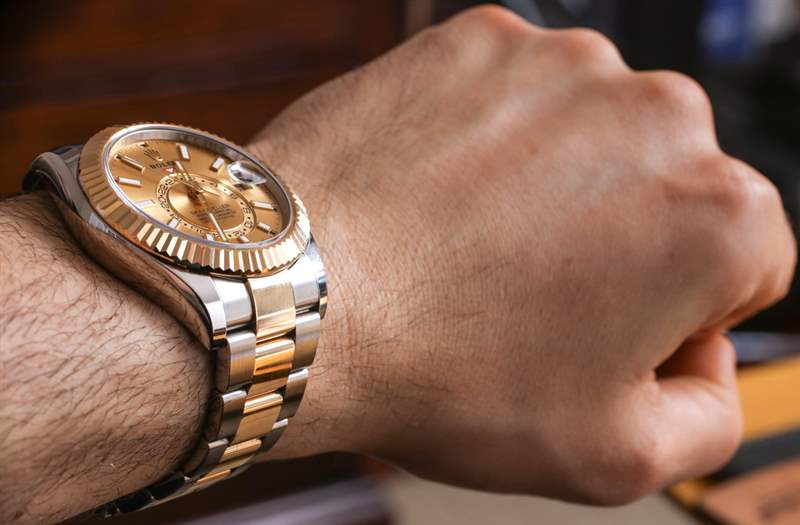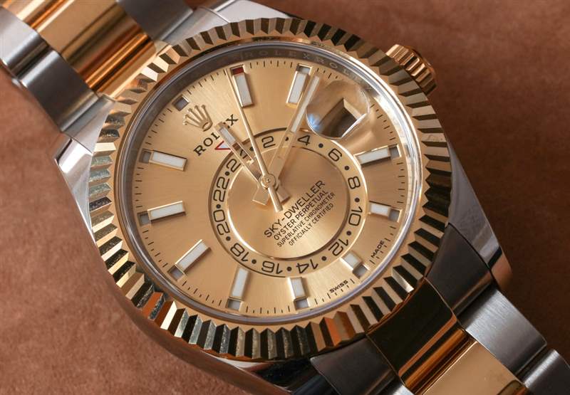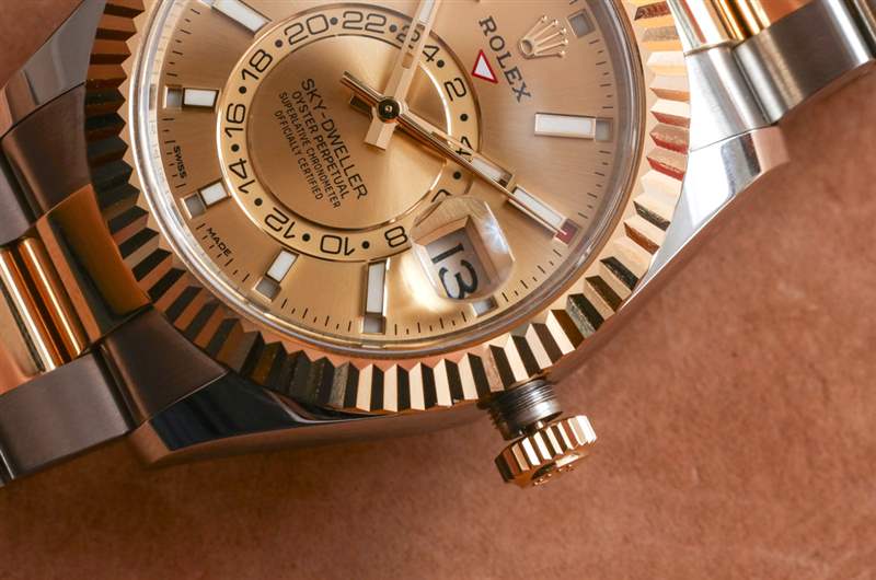 Sky-Dweller 與大多數其他勞力士手表的區(qū)別還在于尺寸。盡管表殼設計仍然是我們所熟知和喜愛的勞力士蠔式,但勞力士將其制作成 42 毫米寬的表殼,使其成為該品牌生產的最大的“考究”時計。在發(fā)布時也可以預見的是,Sky-Dweller 會非常昂貴。勞力士傾向于在全金表殼中推出新型號和機芯,后來才推出雙色或全鋼表款。因此,勞力士直到 2017 年才推出 Rolesor(鋼和金)版本的 Sky-Dweller。沒有全鋼型號,因為勞力士標志性的凹槽表圈是用金制成的。然而,最“易于使用”的 Sky-Dweller 版本配備全鋼表鏈和表殼,表圈僅采用 18k 白金制成??陀^地說,搭配手鐲的 18k 永恒玫瑰金 Sky-Dweller 目前售價 48,850 美元,而主要為鋼制型號的入門級價格為 14,400 美元。評測參考 326933 的價格為 17,150 美元,因為表鏈和表冠中添加了黃金材料。